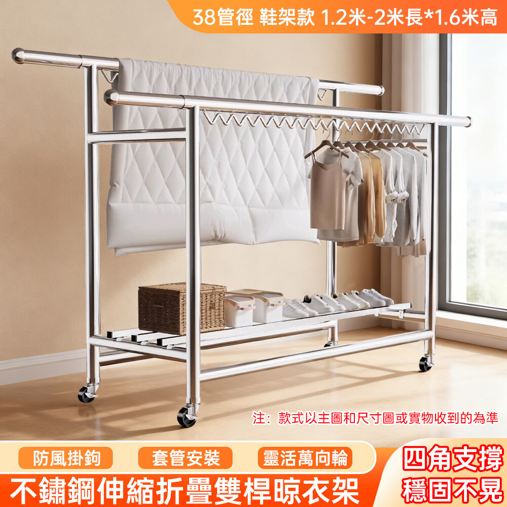現貨速發 防風加厚 不鏽鋼落地晾衣架 家用陽台 伸縮杆 曬被子神器 涼衣架 可收納|可伸縮|結實穩固
