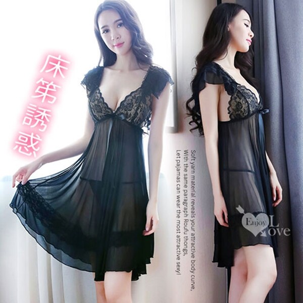 床第誘惑!小蓋袖露背蕾絲半透睡衣【Romance情趣】