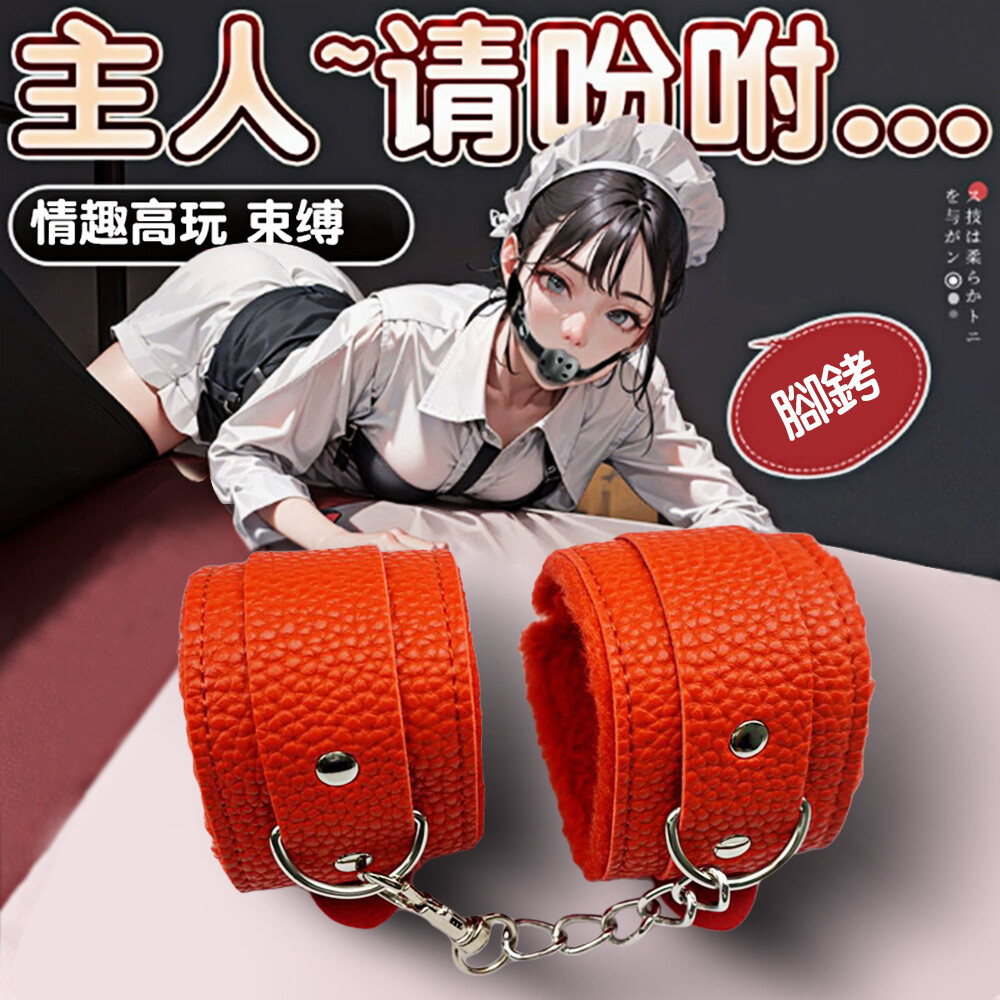 久愛-SM皮革紋理毛絨腳銬-紅