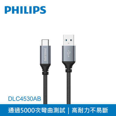 【PHILIPS 飛利浦】1m Type C尼龍編織傳輸充電線 DLC4530AB
