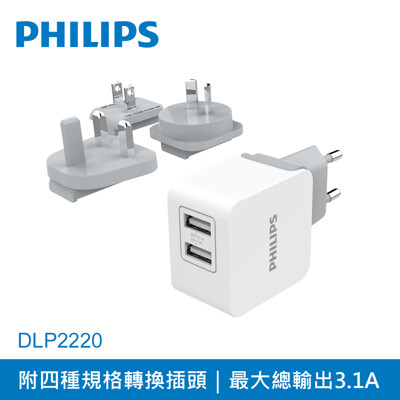 PHILIPS 飛利浦 3.1A附多國插頭雙USB旅充 DLP2220