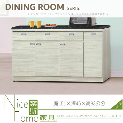 《奈斯家具Nice》039-06-HV 和風雪松5尺黑白根石面收納櫃/餐櫃/下座