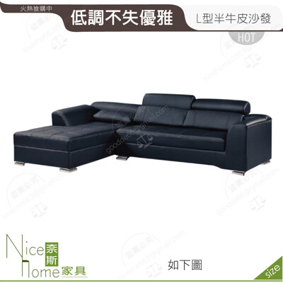 《奈斯家具Nice》245-01-HG 格雷L型半牛皮沙發/整組/黑色/右貴妃