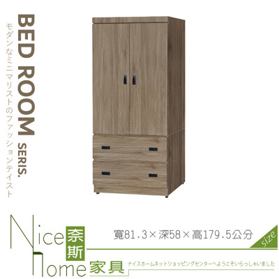 《奈斯家具Nice》106-02-HG 古橡色3×6尺二抽衣櫥/衣櫃