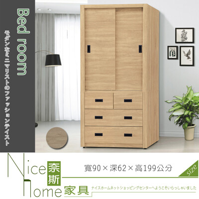《奈斯家具Nice》174-001-HG 艾菲特3×7推門衣櫥/原切橡木/灰橡木