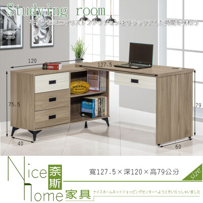 《奈斯家具Nice》854-2-HV 路易士灰橡色L型多功能書桌全組
