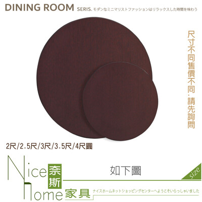 《奈斯家具Nice》391-03-HL 胡桃色餐桌桌面/2尺/2.5尺/3尺/3.5尺/4尺圓