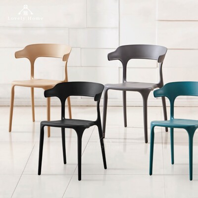 (台中 可愛小舖)北歐風流線 弧形 簡約 牛角椅 素面 四色 一體成形 餐椅書桌椅 休閒椅