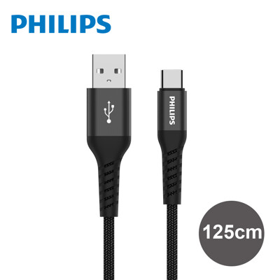【PHILIPS 飛利浦】Type C手機充電線125cm 黑 線材(DLC4550A)
