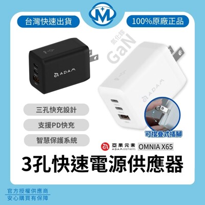 ADAM 亞果元素 OMNIA X65 65W GaN 氮化鎵 3孔 快速電源供應器 USB 充電器