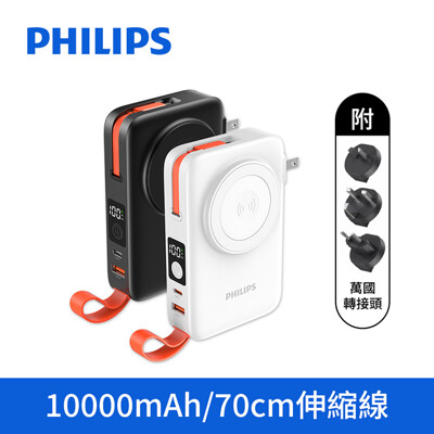 【Philips飛利浦】22.5W伸縮線多合一行動電源 10000mAh (DLP4352C)