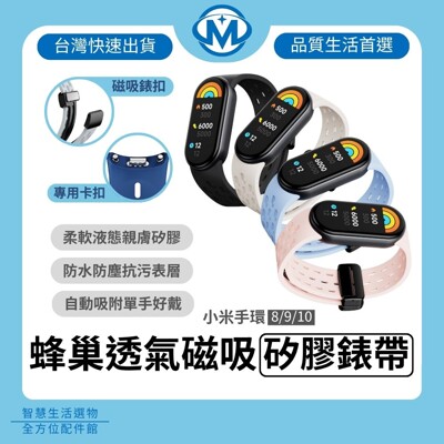 小米手環 10 小米手環 9 小米手環 8 蜂巢 透氣 磁吸錶帶 矽膠錶帶 替換錶帶 手錶帶
