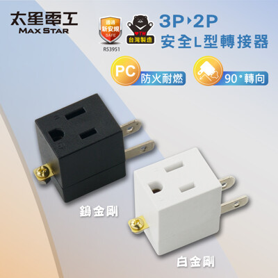 【太星電工】安全L型3P轉2P轉接器 鎢金剛 白金剛 防火耐燃