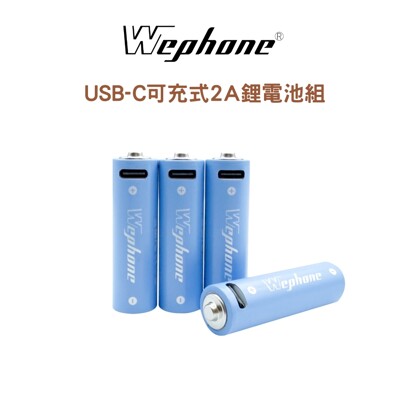【Wephone】3號AA/4號AAA USB鋰離子充電電池 Type-C充電孔(一卡4入裝)