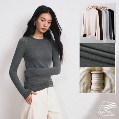 【BODYAIR嚴選】輕暖假兩件細緻羊毛天絲上衣(長袖.上衣.T恤.保暖.CASUAL)