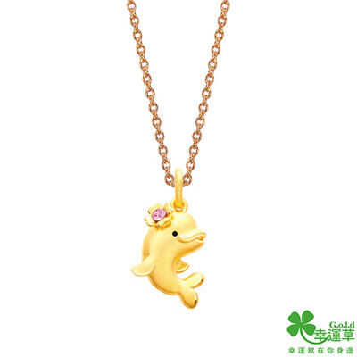 幸運草金飾 啵啵白鯨黃金墜子 送項鍊