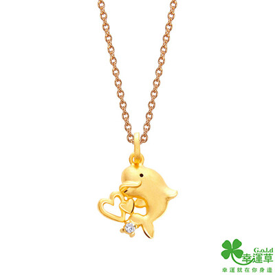 幸運草金飾 啵啵白鯨黃金墜子 送項鍊
