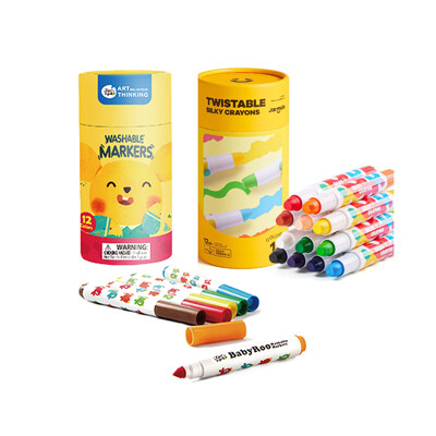 【JarMelo 原創美玩】兒童可水洗彩色筆12色+兒童絲滑蠟筆12色