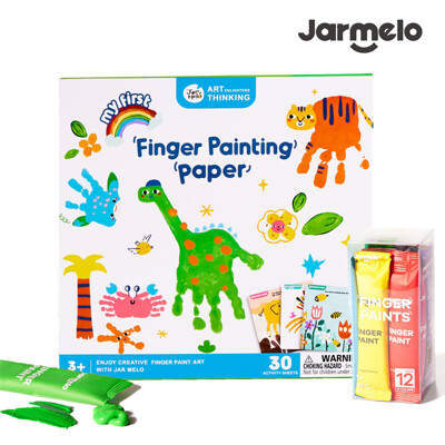 【JarMelo 原創美玩】易洗手指畫基礎6色+創藝調色盤+專用紙(30張)超值組