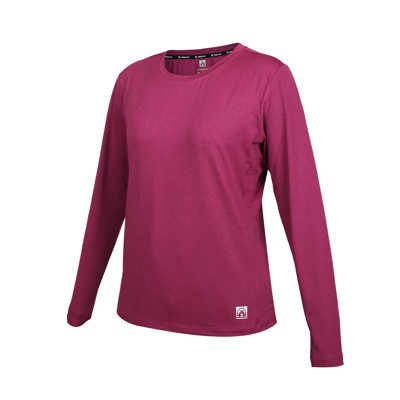 FIRESTAR 女彈性圓領長袖T恤-慢跑 路跑 運動 上衣 吸濕排汗 反光 玫紅