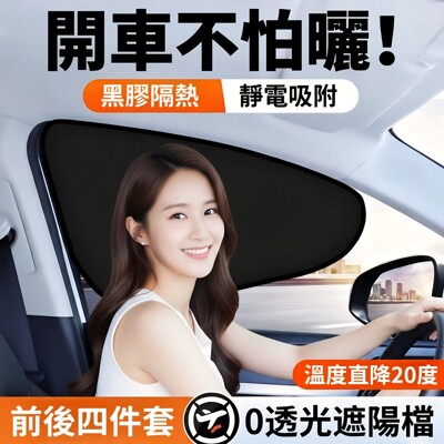 【KOVOL】四件套組 0透光靜電車窗遮陽檔 溫度直降20度