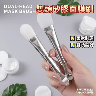 (美妝用品) 雙頭面膜刷 面膜刷 軟毛面膜刷矽膠+刷毛雙效設計 帶挖勺 美妝工具 均勻塗抹不沾手