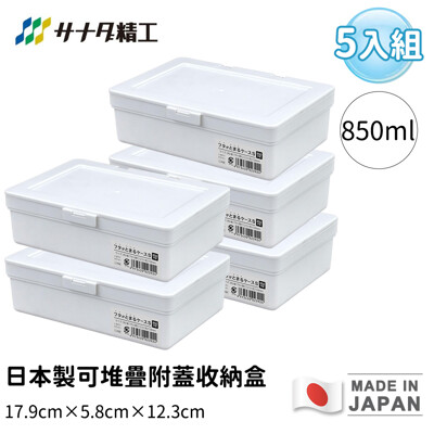 【日本SANADA】日本製可堆疊附蓋收納盒(白)17.9cm×5.8cm×12.3cm-5入組