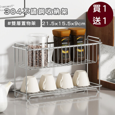 【好拾選物】304不鏽鋼收納架/雙層置物架/調味料/水杯收納架-2入組-小21.5x15.5x9