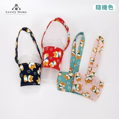 (台中 可愛小舖) 柴犬杯套【隨機色】帆布杯套 飲料杯套 環保提袋 飲料袋 環保袋 提帶 收納 杯套