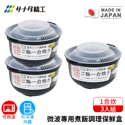 【日本SANADA】日本製微波專用煮飯調理保鮮盒1杯米150g-3入組