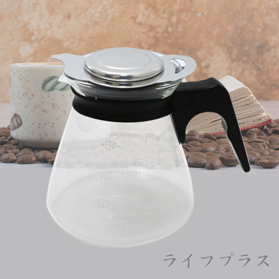 台灣製玻璃咖啡壺-605cc-塑膠手把x1+304不鏽鋼沖泡茶濾網組x1入