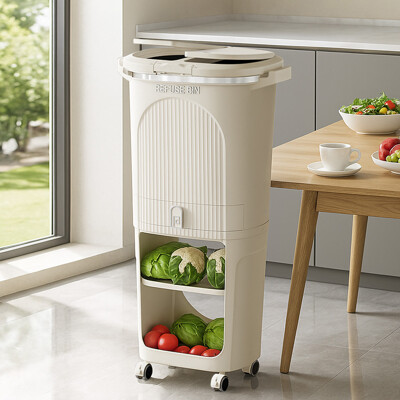 現貨 廚房垃圾桶 家用帶蓋垃圾桶 大容量雙層廚余收納桶 幹濕分離分類垃圾桶