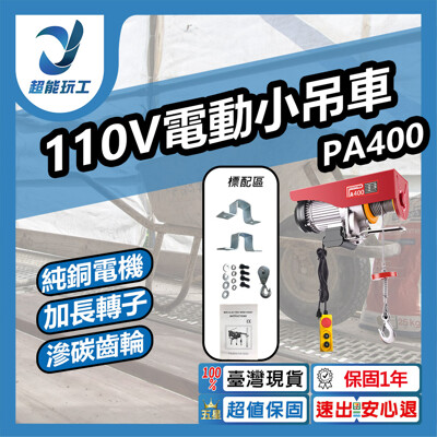 超能玩工 保固一年●電動吊車110v 400KG線控 電動小吊車 線控遙控 電動吊車 電動小金剛