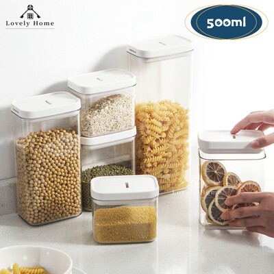 (台中 可愛小舖) 500ml透明密封方格罐 儲物罐 方形保鮮罐 密封罐 零食罐 防潮罐 保鮮盒