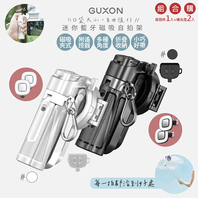 【GUXON】口袋拍迷你藍牙磁吸手機自拍棒/相機腳架(G25TC) 補光燈*2
