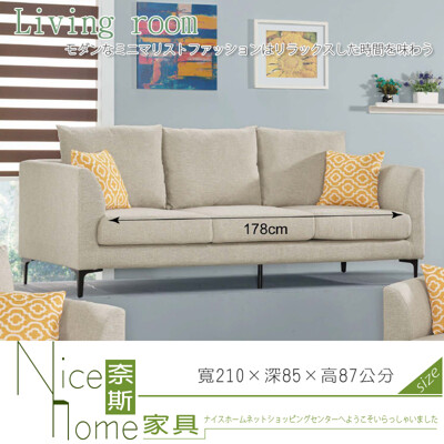 《奈斯家具Nice》191-7-HA 米莉亞三人布沙發