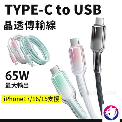 typec USB 晶透傳輸線 type c 充電線 傳輸線 65W 快充線 iphone17充電線
