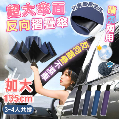 晴雨兩用加大傘面黑膠反向折疊傘