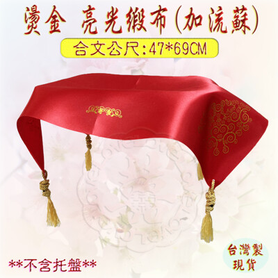 台灣製【緞布 秀士布 頒獎托盤 聘金紅喜巾 開幕百貨 妙妙屋禮贈品】燙金亮光緞托盤布(附流蘇