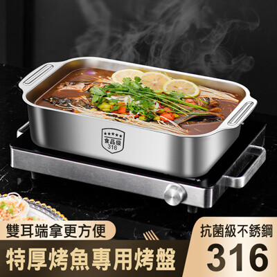 【居家寶盒】多功能 316不銹鋼烤魚盤 長方形深盤 防燙雙耳魚盤 燒烤烘焙用具 家用商用(無蓋)