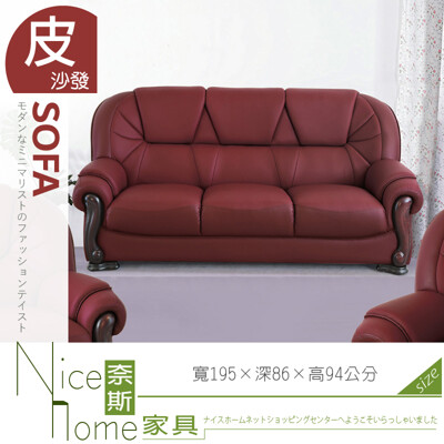 《奈斯家具Nice》053-04-HV 小出木半牛皮沙發/棗紅色/3人座