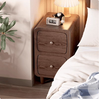 實木床頭櫃小型簡約現代家用新款臥室超窄櫃子極窄置物迷你床邊櫃帶抽感應燈迷你床頭櫃縫隙櫃抽屜櫃