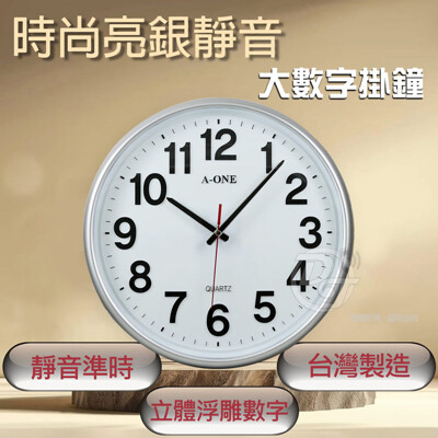 A-ONE金吉星 時尚亮銀靜音大數字掛鐘 TG-0236