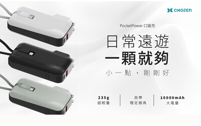 CHOZEN 雙線快充口袋行動電源/夜輕黑/淺荷綠/棉霧白 (贈轉換插頭) 出國旅行 手機充電