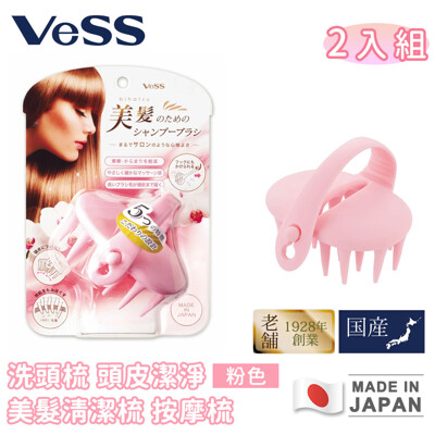 【VESS】日本製 洗頭梳 頭皮潔淨 美髮清潔梳 按摩梳-粉-2入組
