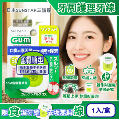 日本SUNSTAR三詩達-GUM去齒垢牙周護理牙線1入/盒-50M含蠟滑順型