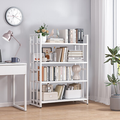 現貨 鐵藝書架 落地置物架 簡易四層書架 落地收納架 閱讀書櫃 60x115CM-白架
