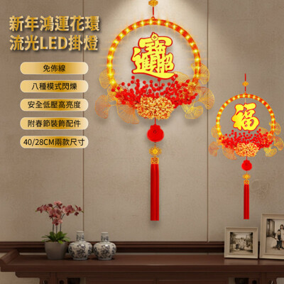 【APEX】新年鴻運花環流光LED掛燈_28CM