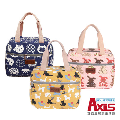 【AXIS 艾克思】療癒系貓兔帆布保溫便當袋.手提袋