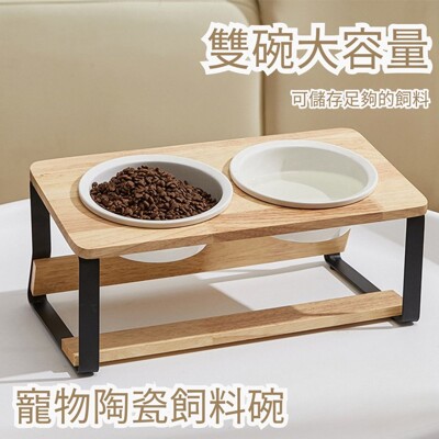 寵物陶瓷飼料雙碗 貓碗 雙碗設計 寵物雙碗 護頸斜口碗 碗架可拆分 寵物水碗 寵物飯盆 狗碗